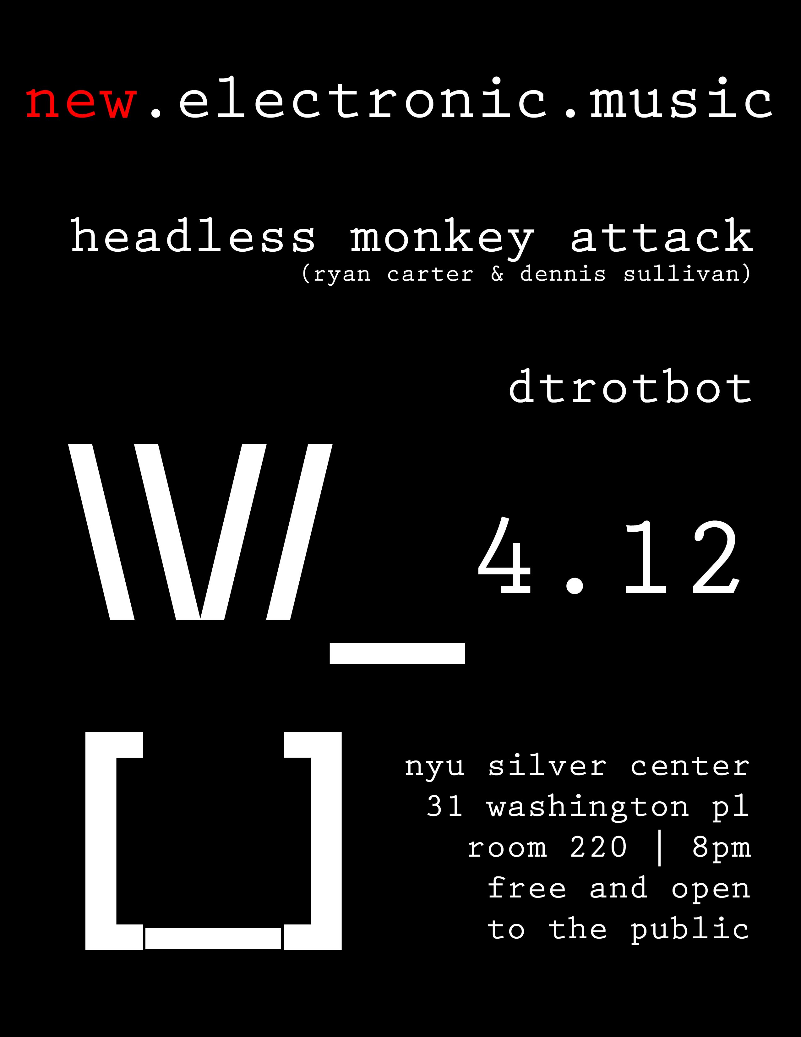 April 12th – DT ROTBOT & Headless Monkey Attack – NYU Silver Center Room 220 – New York NY