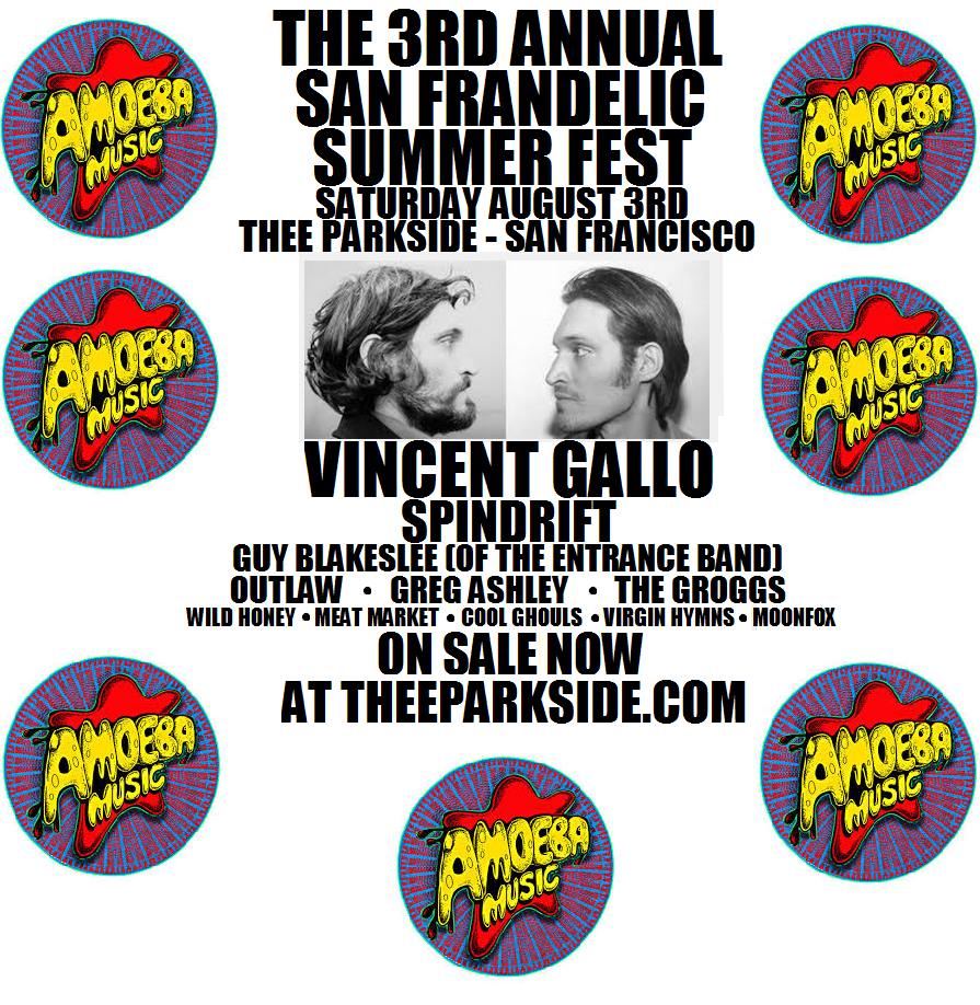 The Process Records Media Group along with The Deli Magazine San Francisco and Ameoba Music are proud to announce their support of the San Francisco based psych/alternative rock festival, The San Frandelic Festival. This event which will feature the Entrance Band, Spindrift and Vincent Gallo will take place in San Francisco on August 3rd, 2013 at Thee Parkside.